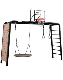 Com assento ninho, cesta de basket, anéis e parede de escalada!