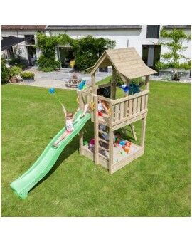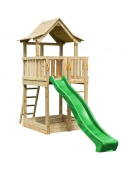 - Mirante com telhado e rampa de escorrega no topo para aventuras inigualáveis.