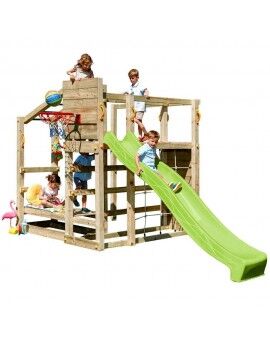 A casinha conta com detalhes encantadores, como uma varanda para desfrutar da vista, uma porta que convida à imaginação e uma janela que ilumina o interior com a luz do dia. A qualidade da madeira, a rampa do escorregador verde e todos os acessórios necessários, incluindo âncoras para fixação em solo macio, fazem do Beach Hut XL a escolha perfeita para a diversão segura e duradoura.