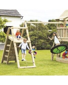O Parque Infantil Belvedere XL oferece uma experiência inigualável. Os pequenos aventureiros podem aceder a uma casinha de madeira elevada de duas formas emocionantes: subindo por uma elegante escada de madeira ou desafiando a íngreme parede de escalada. A diversão atinge o seu auge ao deslizar pela ampla rampa do escorrega. Onde termina a diversão? Na base, onde podem desfrutar de jogos criativos com areia! E isso não é tudo, uma das laterais abriga a incrível estrutura Challenger, com um baloiço duplo, uma rampa de escalada e uma rede de cordas para trepar.