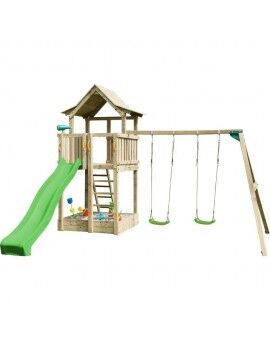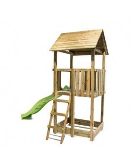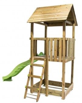 Este parque conta com uma torre de madeira quadrada com uma plataforma a 90 cm de altura, a partir da qual as crianças podem deslizar por uma rampa de escorrega de 120 cm de comprimento. O acesso à torre é feito através de dois degraus no lado oposto à rampa de escorrega, com 30 cm cada. A torre tem um design divertido com um telhado duplo em forma de ponta.
