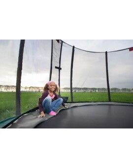 Segurança em primeiro lugar: A segurança é uma prioridade. A estrutura do trampolim foi projetada para resistir aos elementos, e a rede de segurança Deluxe integra-se perfeitamente ao trampolim para manter os saltadores seguros em todos os momentos. Além disso, a proteção de mola disponível em cinza ou verde, extra larga e muito grossa, acrescenta uma camada extra de segurança.