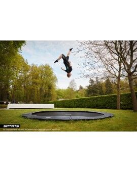 Imagine um trampolim que se integra sem esforço no seu jardim, ao mesmo nível da relva, sem ruídos...